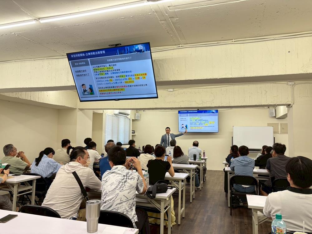 為協助會員公司掌握當前勞動關係發展趨勢,本會舉辦「企業不可不知~新型勞動關係」講座,特別邀請李明旭講師分享其多年實務經驗,針對新型態僱傭模式、勞動法令演變及企業因應策略等重點進行深入解析。講座現場氣氛熱絡,各會員公司反應熱烈,並針對後續人力資源與勞動管理實務深具助益。