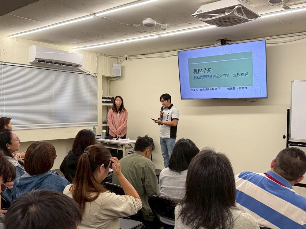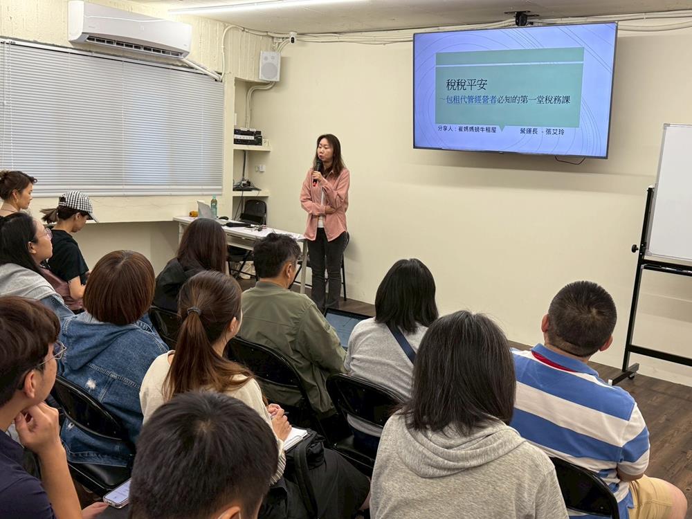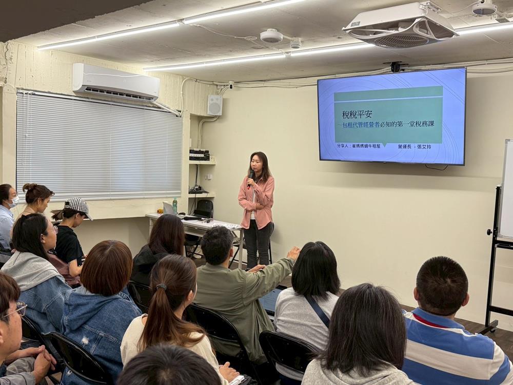 為協助會員公司更清楚與瞭解租服業稅務概要、包租代管稅務差異及經營者必懂的看帳重點、降低經營風險,本會舉辦「稅稅平安~包租代管經營者必知的第一堂稅務課」講座,本次講座特邀張艾玲副理事長實務經驗分享,講座內容實用且貼近業界需求,會員公司反應熱烈,對於後續稅務規劃與經營管理助益良多。