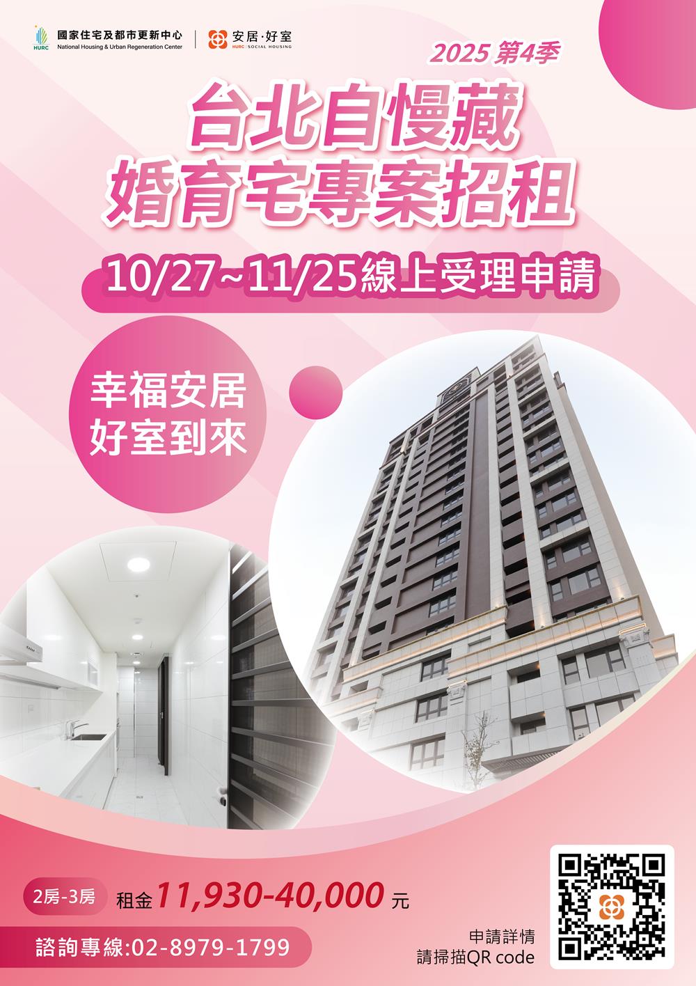 國家住宅及都市更新中心辦理「自慢藏」婚育宅專案招租,即日起開放線上申請。