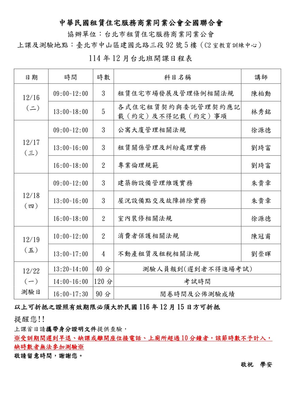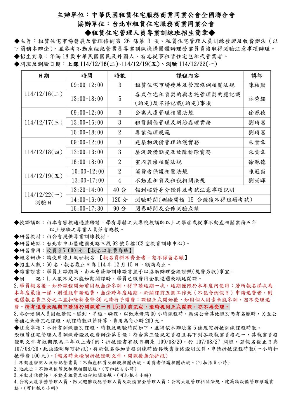 (初訓)114年12月份【租賃住宅管理人員專業訓練班】-第二梯次