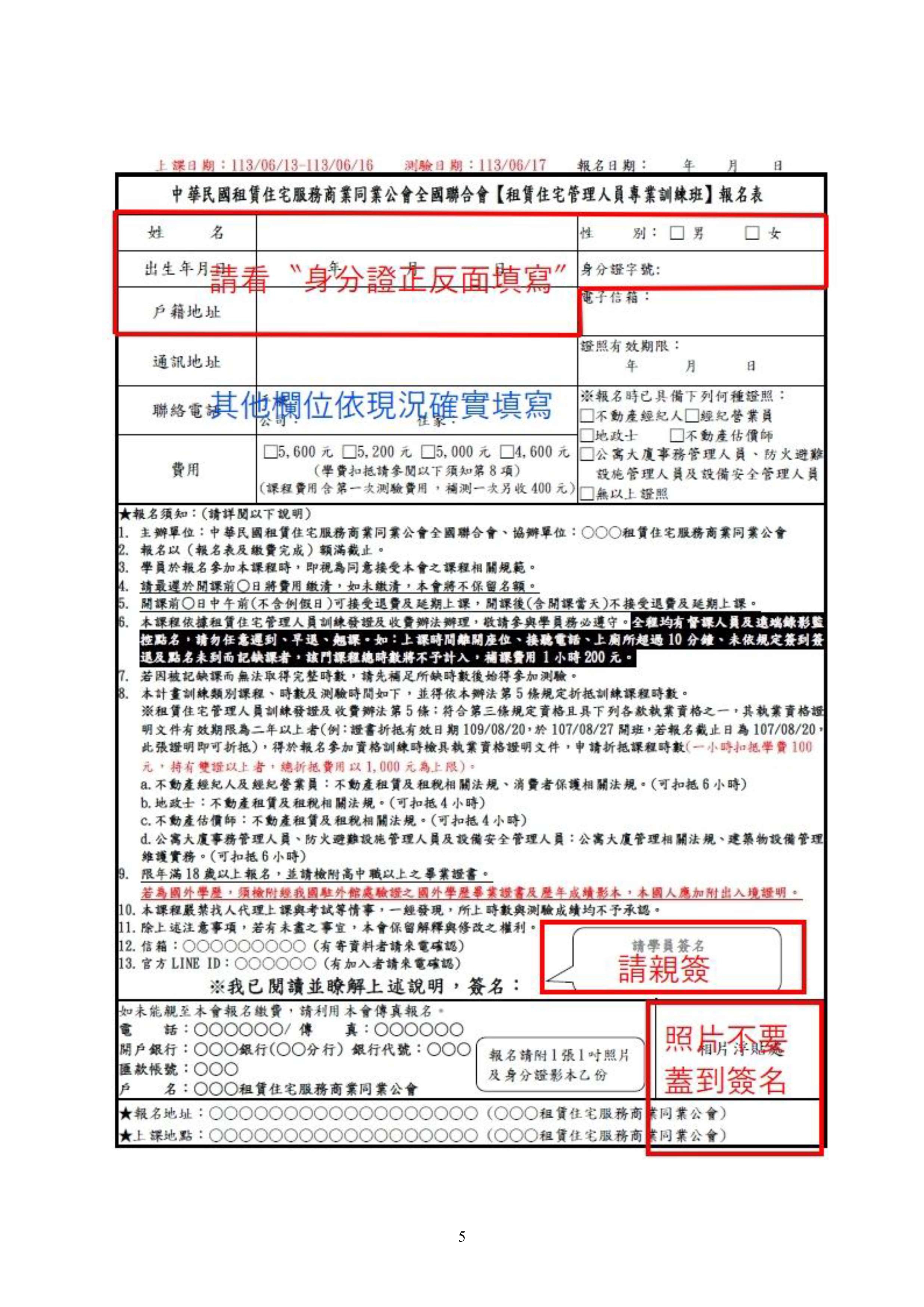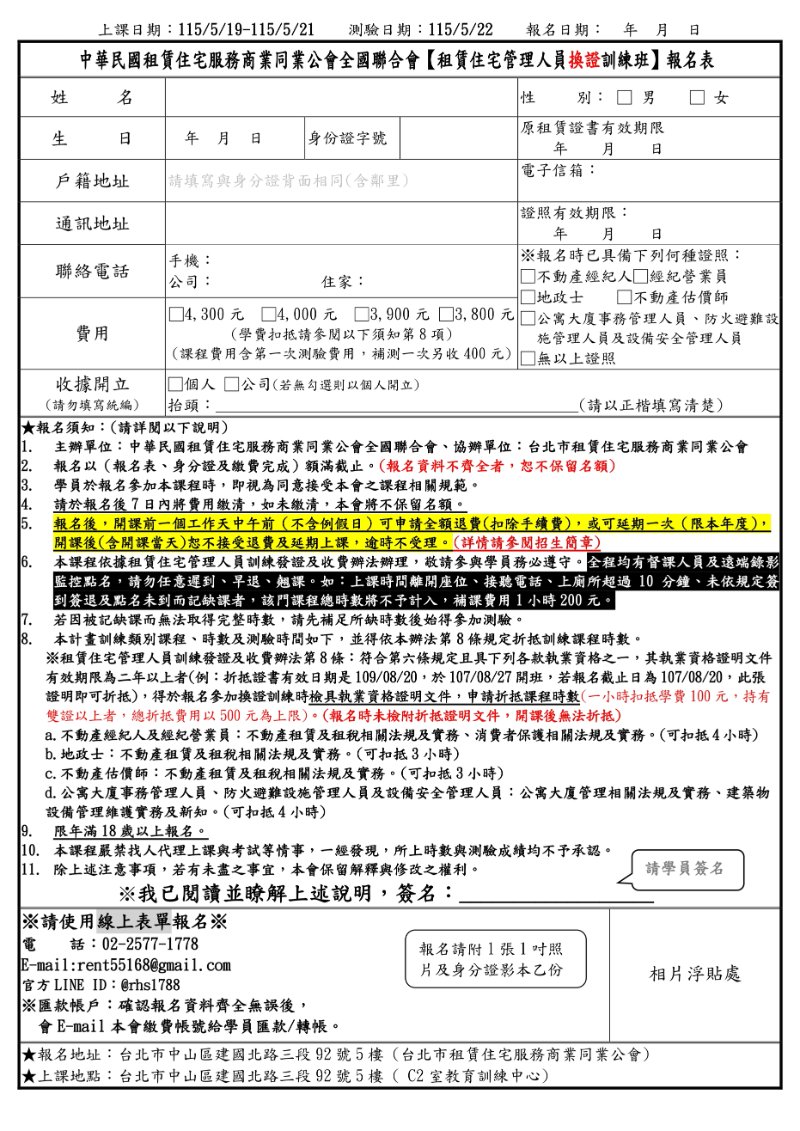 (複訓)115年5月份【租賃住宅管理人員專業訓練班】報名表