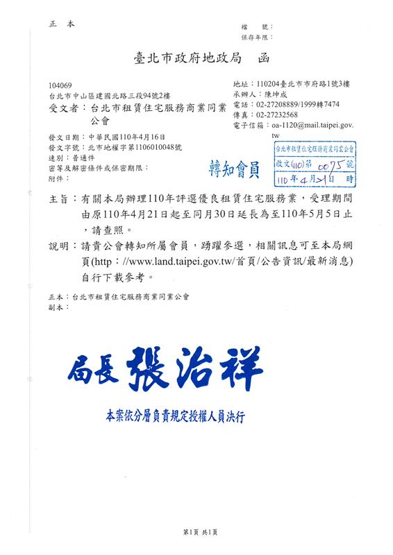 最新消息 : 轉發租賃住宅業公文