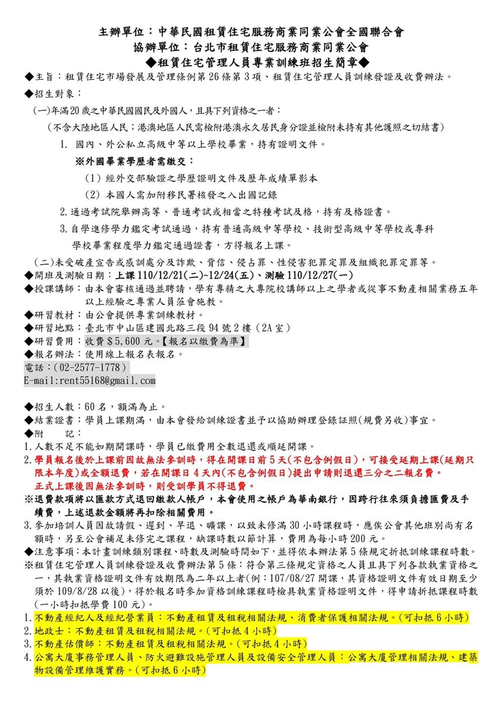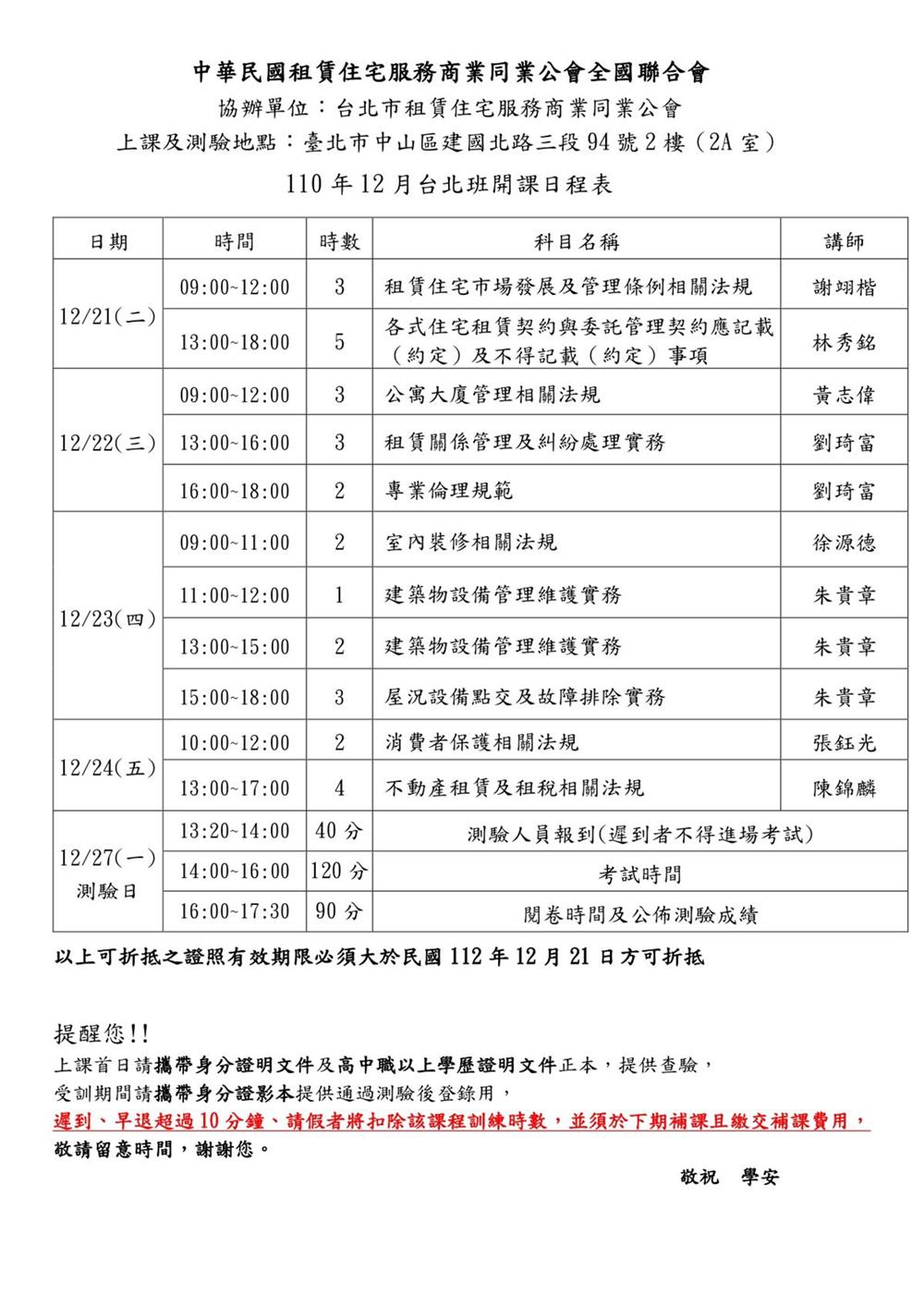 110年12月份【租賃住宅管理人員專業訓練班】