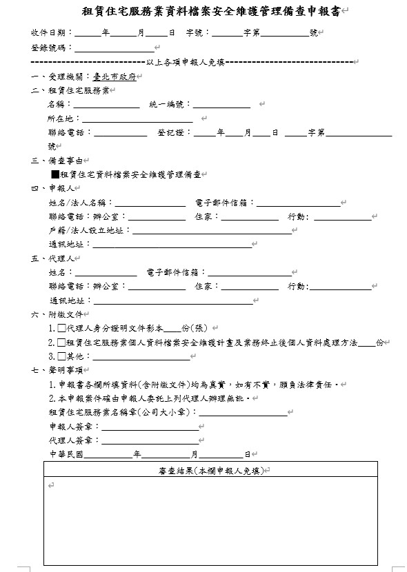 租賃住宅服務業資料檔案安全維護管理備查申報書