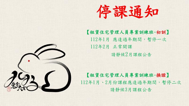 租賃管理人員課程-停課通知