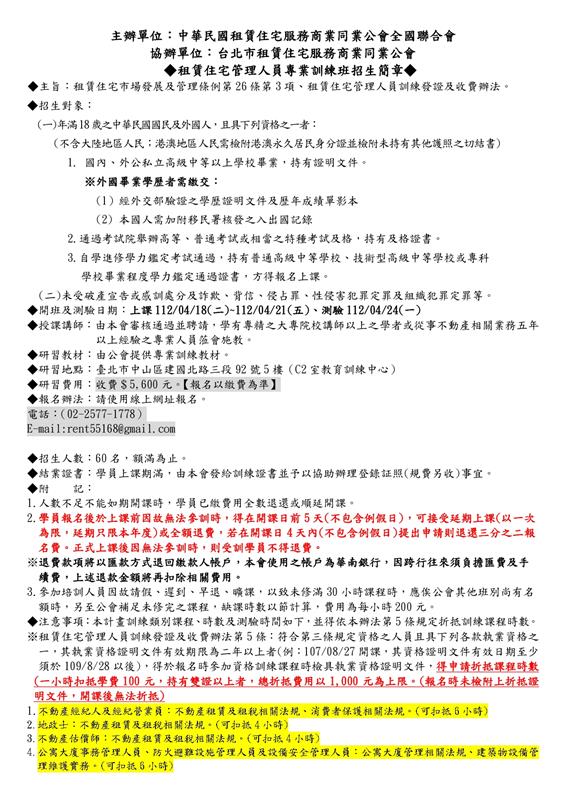 (初訓)112年4月份【租賃住宅管理人員專業訓練班】