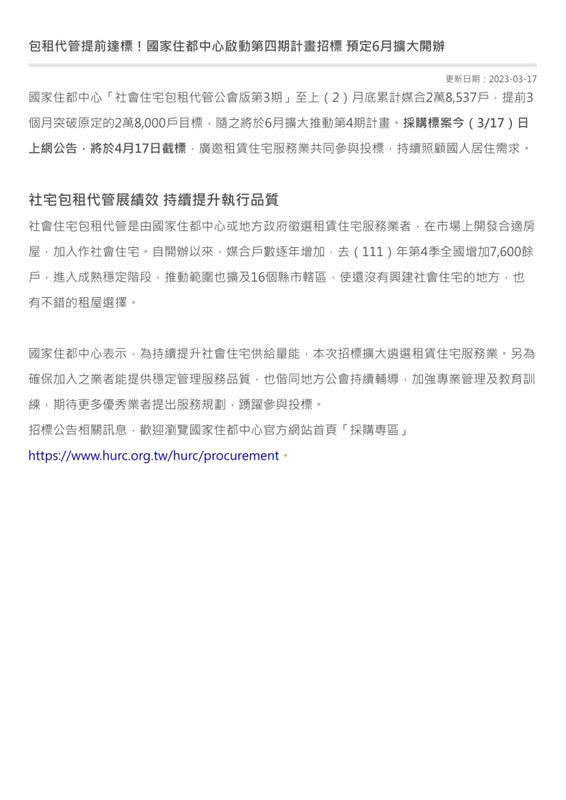 國家住都中心包租代管社會住宅 #公會版,第4期上網公告!