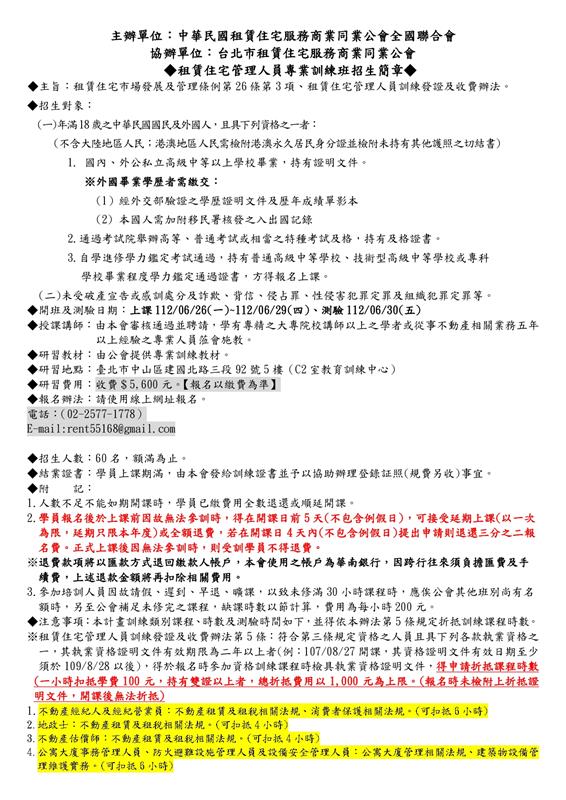 (初訓)112年6月份【租賃住宅管理人員專業訓練班】