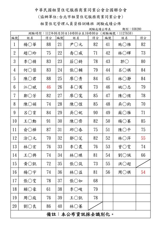 (初訓)112年06月份【租賃住宅管理人員專業訓練班】測驗成績單