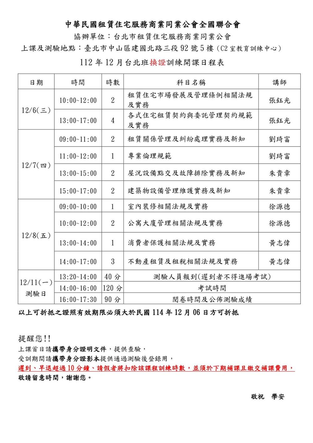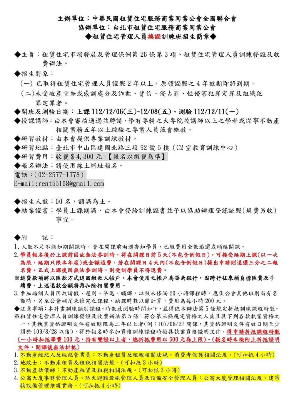 (複訓)112年12月份【租賃住宅管理人員專業訓練班】