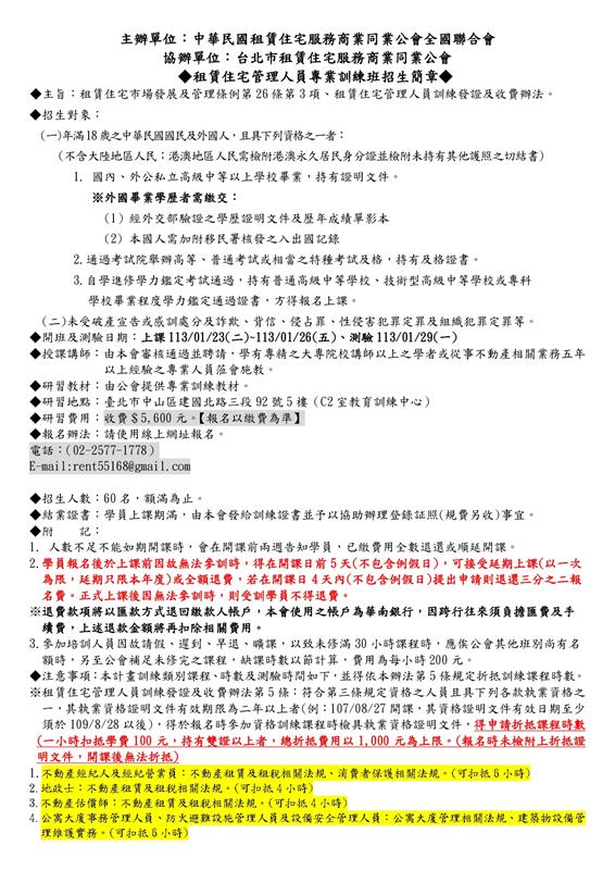 113年1月份【租賃住宅管理人員專業訓練班】-PDF