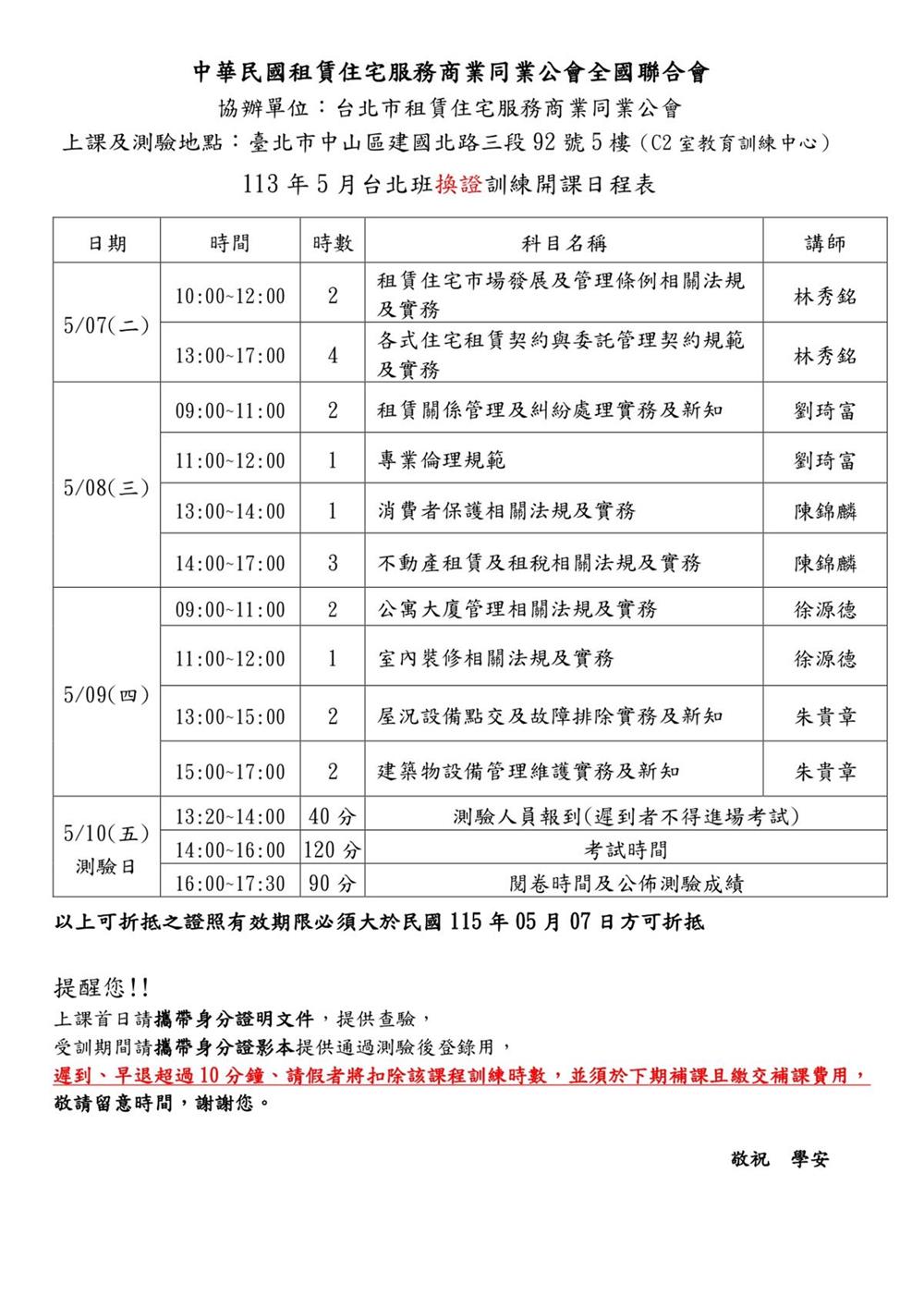 (複訓)113年5月份【租賃住宅管理人員專業訓練班】