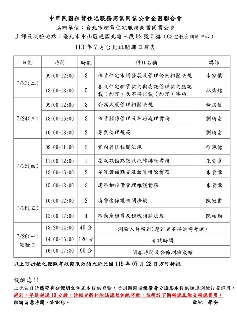 (初訓)113年7月份【租賃住宅管理人員專業訓練班】