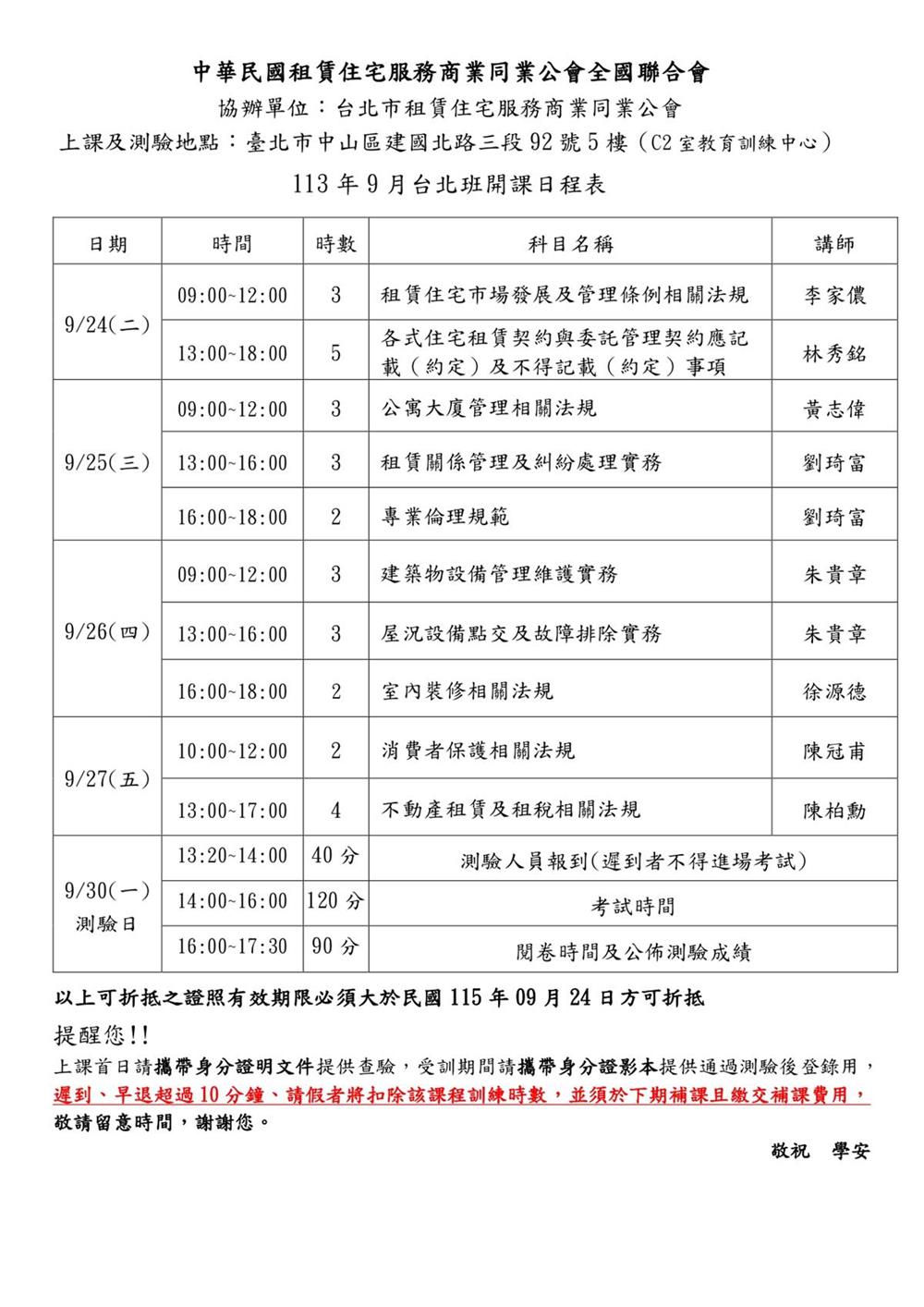 (初訓)113年9月份【租賃住宅管理人員專業訓練班】