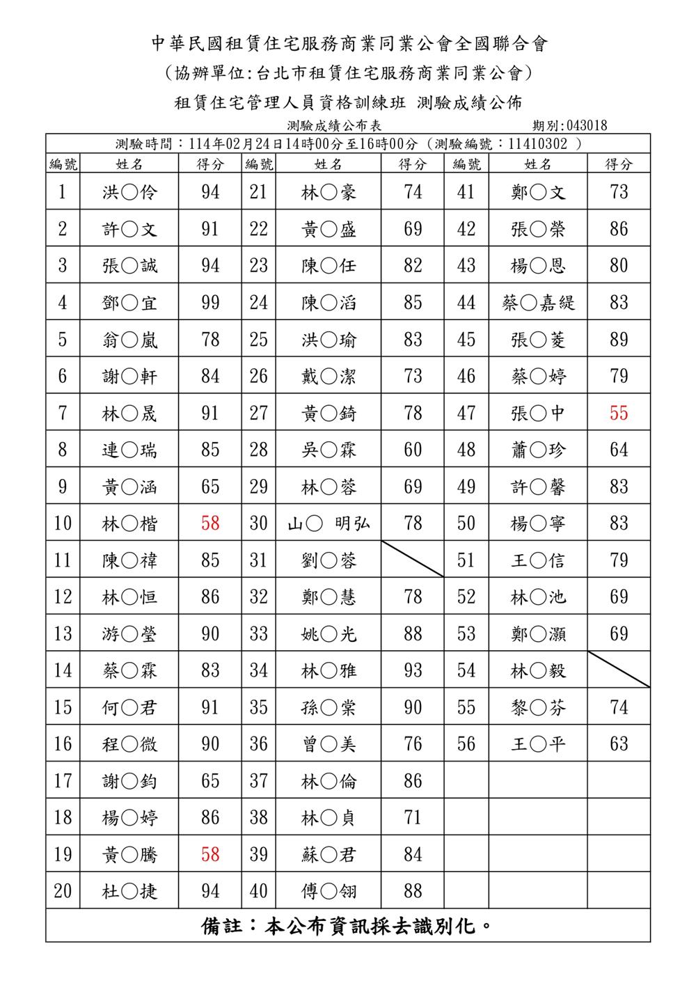 (初訓)114年2月份【租賃住宅管理人員專業訓練班】測驗成績單