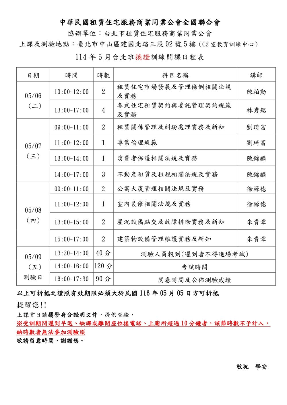 (複訓)114年5月份【租賃住宅管理人員專業訓練班】