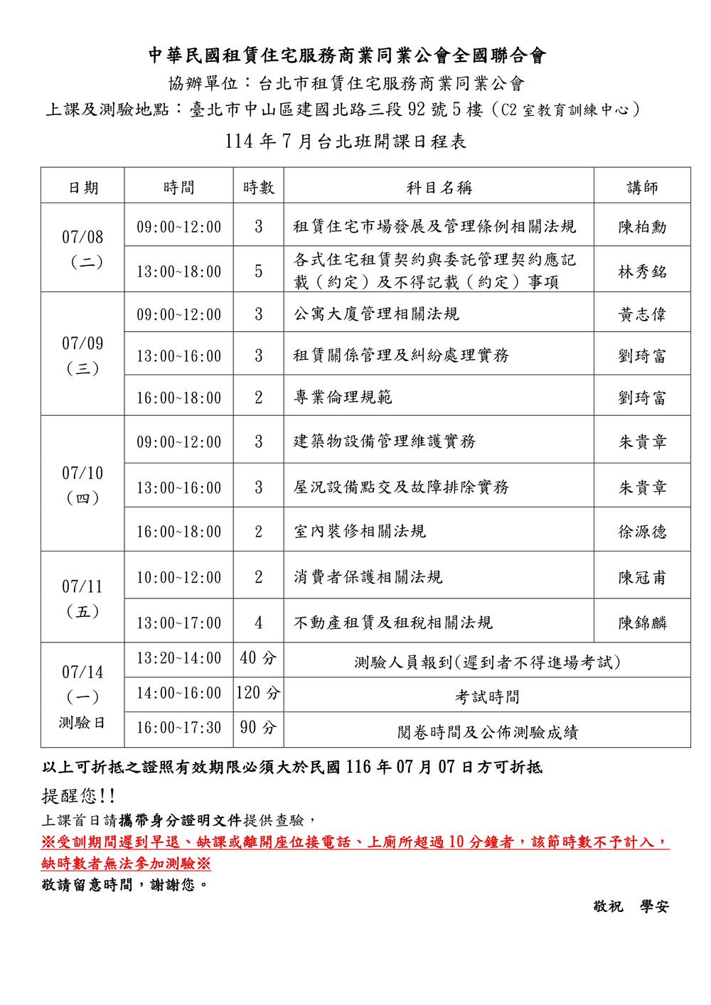 (初訓)114年7月份【租賃住宅管理人員專業訓練班】